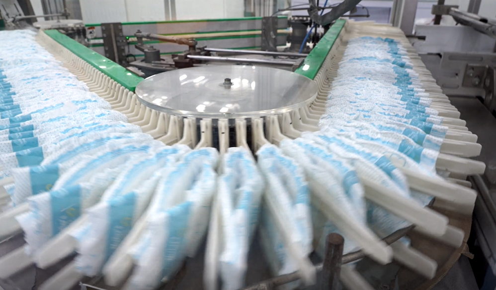 Raw materials:Wood Pulp/PE Film/Nonwoven/SAP